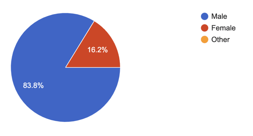 84% male, 16% female. We have a surprisingly large audience of females compared to the general demographic of developers